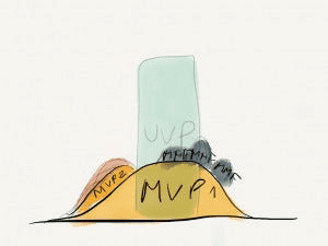 Let’s say MVP2 is successful and you are seeing real traction from early adopters. You want to increase growth and deepen penetration among your early adopters, as well as bring on new clients, some of whom are beyond the early adopters crowd. Based on the feedback you’ve been collecting and your product management research, you have a couple of areas that could drive this growth. Some of them, by the way, extend your unique value proposition, and some of them make your current product more robust.
