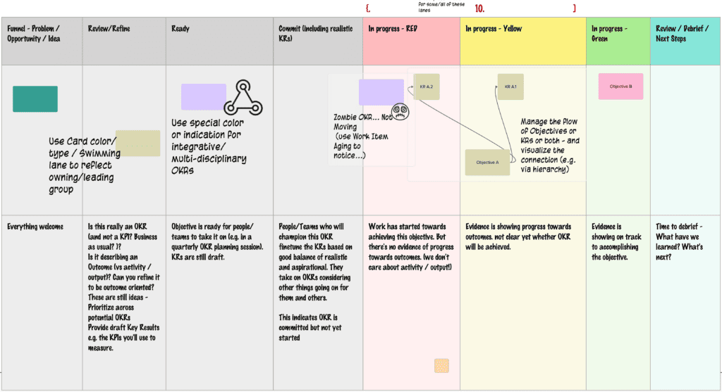Here are some of my favorite patterns for managing OKR flow using Kanban: