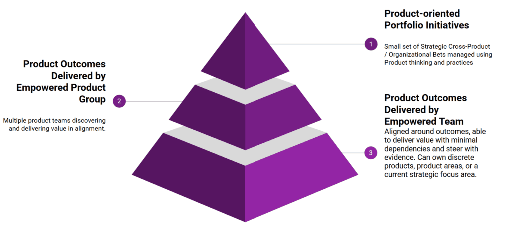 Empowered Product Teams: The foundation of a healthy organization. These teams own outcomes aligned with strategic goals and operate autonomously. They rarely depend on other teams to deliver value.